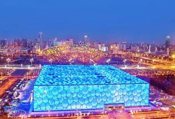 國家游泳中心(National Aquatics center),別名“水立方”、“冰立方”。國家游泳中心總建筑面積65000—80000平方米,其中地下部分的建筑面積不少于15000平方米,長寬高分別為177×177×30米。場館外觀如同一個冰晶狀的立方體,造型簡潔現(xiàn)代。場館內部是一個六層樓建筑,平面呈正方形。館內設施主要包括比賽大廳、熱身池,多功能大廳以及大型嬉水樂園?!氨⒎健北线\動中心位于國家游泳中心南廣場地下空間,整體建筑面積約8000平方米。